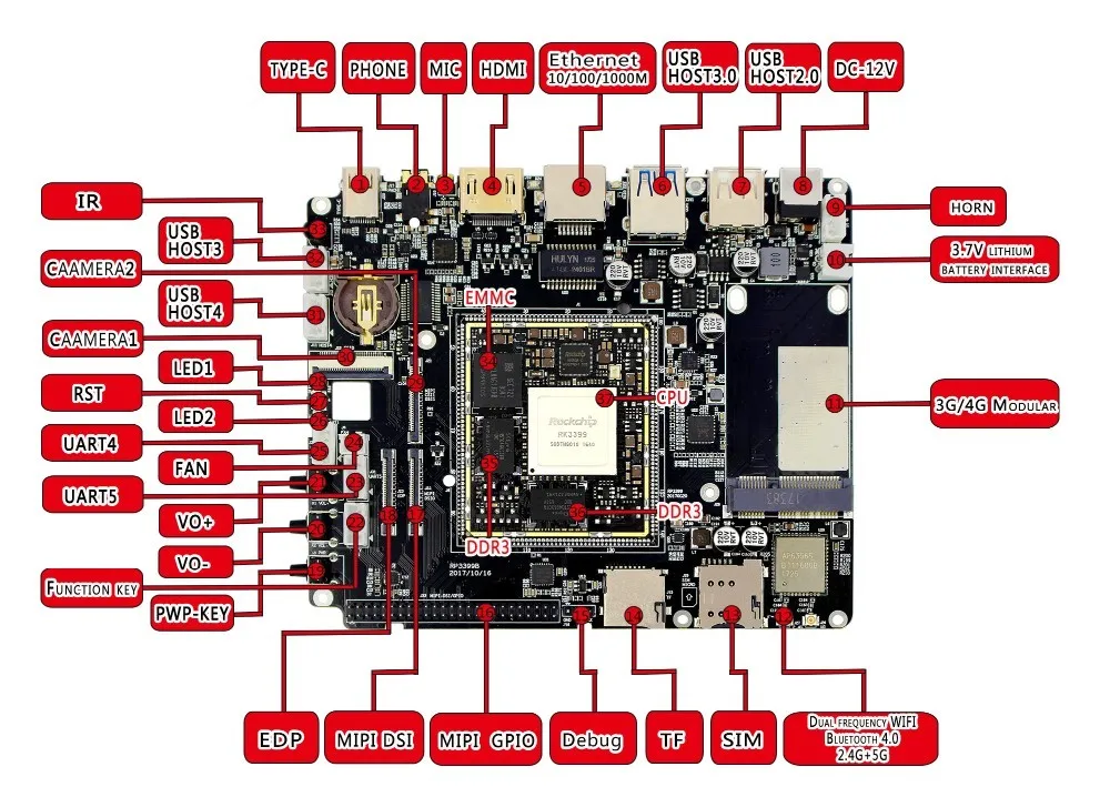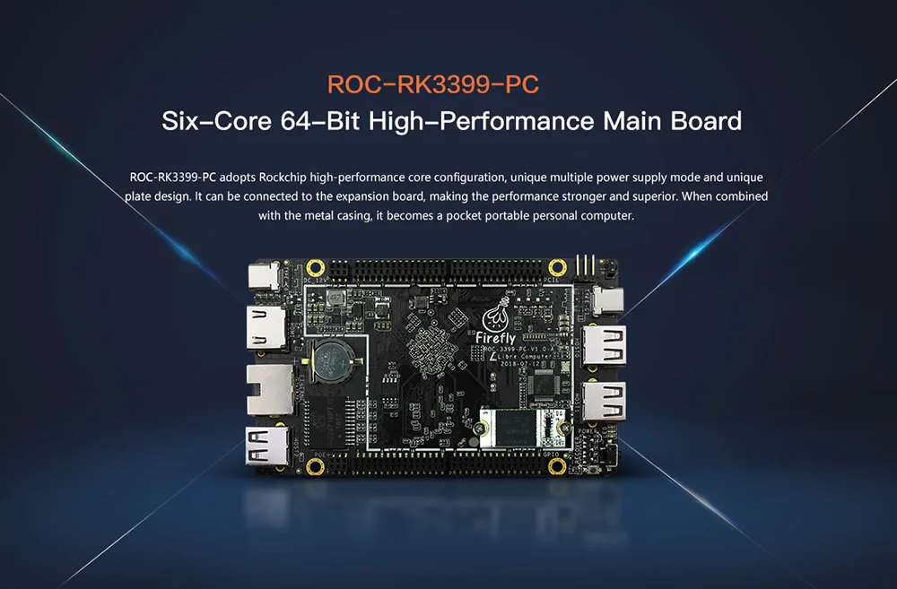 The FireFly board RK3399 SoC оснащен шестью ядрами (Hexa).