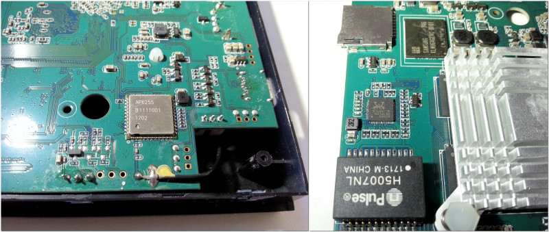 Теперь пару слов об установленных компонентах. Для проводного соединения служит сетевой гигабитный контроллер Raltek RTL8211E (для подключения по LAN кабелю), для беспроводного — двухдиапазонный беспроводной модуль Ampak AP6255 (Wi-Fi + Bluetooth) с возможностью подключения в режиме 801.11ac: