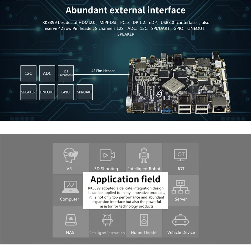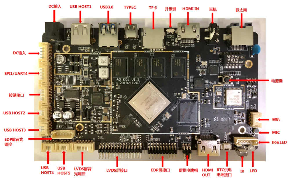 Сосредоточимся на нескольких основных особенностях этой платы. Плата объединяет около четырех типов внешних видеоинтерфейсов. Среди них интерфейс USB 3.0 Type C, который работает как интерфейс типа OTG, поддерживает стандарт DP 1.2 и может использоваться для вывода видеосигнала с качеством 2Kx4K. И HDMI, и USB 3.0 Type C, и интерфейс HDMI 2.0 могут работать одновременно под ОС Android 6.0 в этом режиме двойного отображения. Вам нужно заставить его работать, чтобы купить адаптер USB 3.0 Type C HDMI или кабель и просто подключить его к другому монитору.