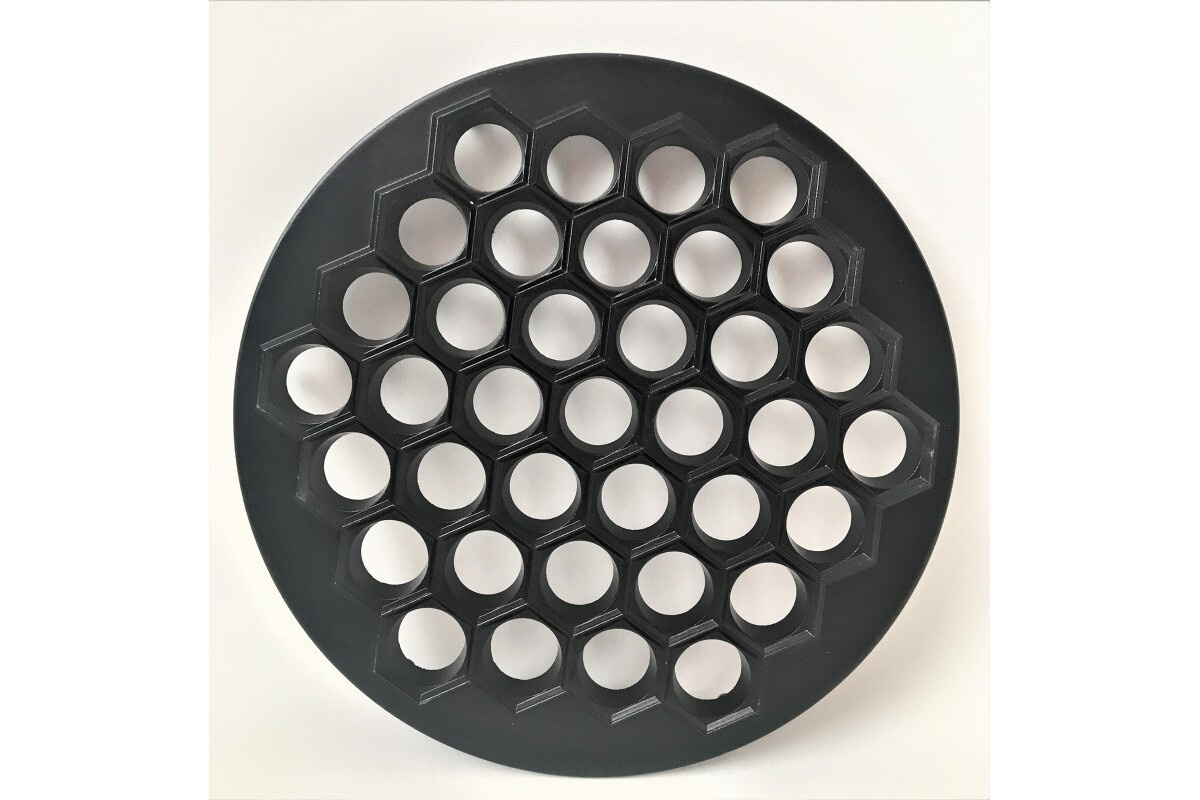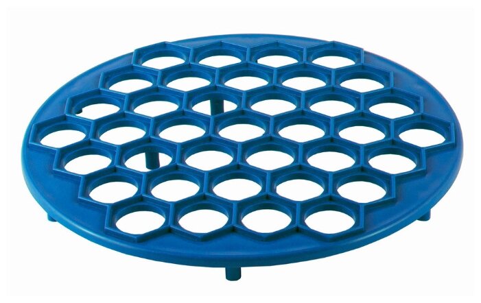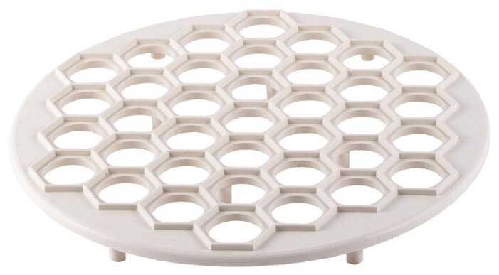 - Решетки. Самый распространенный вариант пельменницы, бывает металлическим и пластиковым. Форма готового продукта варьируется от круглого до овального, в зависимости от размера ячеек диаметр также оказывается разным.
