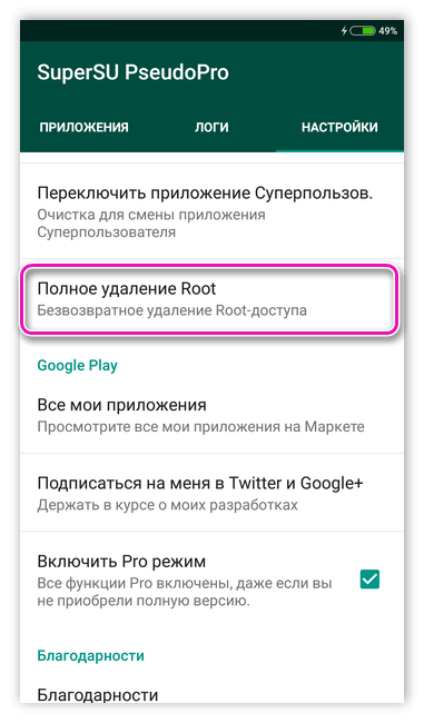 Удаление прав через ПK – трудоёмкий процесс, занимающий большое количество времени и требующий использования нескольких сторонних программ. Поэтому этим методом пользоваться не рекомендуется, отдав предпочтение инструментам из Play Маркет.