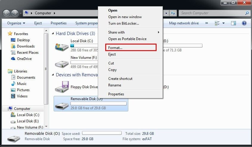 Разверните верхнюю панель инструментов, перейдите в Управление и выберите Формат. Или щелкните правой кнопкой мыши SD-карту и выберите Формат в контекстном меню.