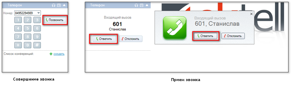 | Звонок Когда телефон вашего контакта находится в сети и звонит | |