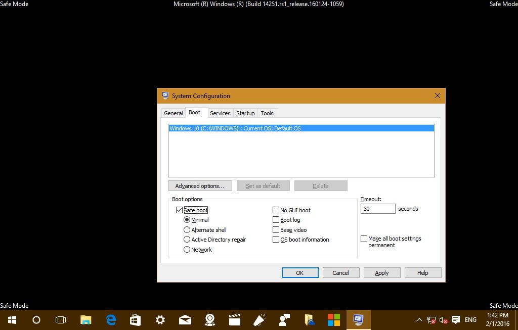 В Windows 10 существует четыре типа безопасного режима. Вот их краткое описание и описание действий: