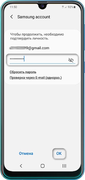 Восстановление забытого пароля в Samsung Account