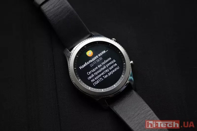 Как и в Gear S2, главный элемент дизайна — это вращающийся безель. Управлять часами действительно очень комфортно: каждый шаг в меню ощущается, поэтому промахнуться мимо нужного пункта действительно очень сложно.