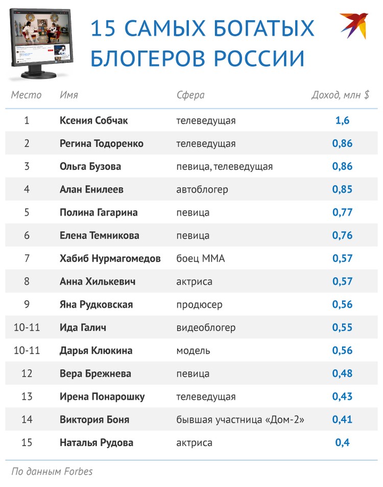 В прошлом году Forbes впервые представил рейтинг Instagram-блогеров.