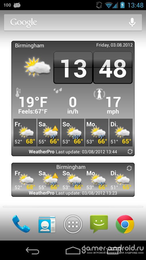 Пользователи, оставившие отзыв о приложении, отмечают его внешнюю привлекательность и практически полное совпадение прогнозируемой погоды с тем, что происходит за окном. Однако, если вы будете получать информацию не через виджет, а путем запуска проги, то вам наверняка помешает реклама. Плюс ко всему The Weather Channel недоступен для скачивания через Google Play.