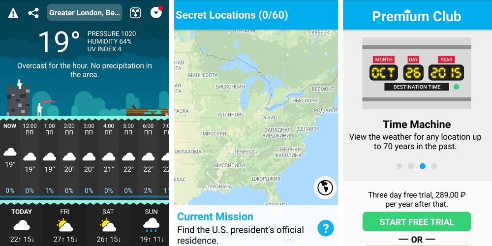 - Погода перепада — iOS, Android (бесплатно с рекламой или 1,99 доллара в месяц, 2,99 доллара в месяц или 10,49 доллара в год)