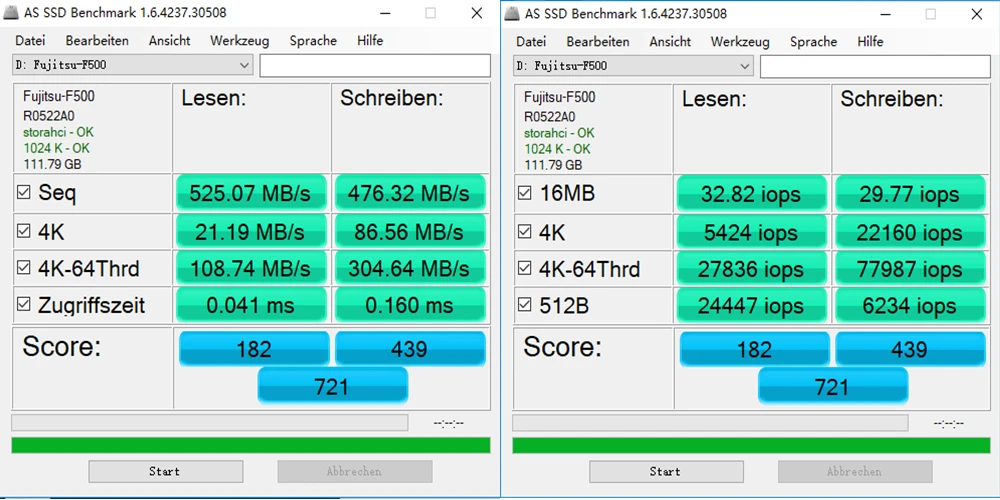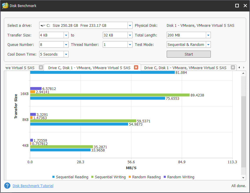 Шаг 3: После установки параметров нажмите «Пуск». Затем подождите несколько секунд, чтобы получить результат теста производительности диска.