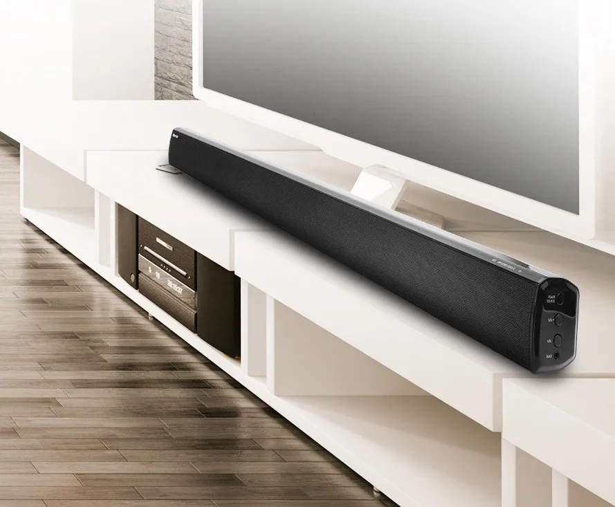 ТВ -спикер душераздирающие спецэффекты, которые являются ключевой частью приятного просмотра. В современных плоских телевизорах не хватает места для размещения домашнего развлекательного динамика разумного размера, поэтому добавление звуковой панели предлагает простой способ наслаждаться своими программами с мощным звуком. Благодаря своей тонкой форме саундбары занимают мало места. Их легко разместить под телевизором или на кронштейне на стене позади него.