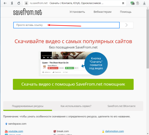 Помощник SaveFrom.net предназначен для облегчения процесса скачивания и загрузки пользователем файлов с различных ресурсов глобальной сети во всемирной паутине. Например, больше половины жителей России сталкивались с такой проблемой, как загрузка песни из социальной сети ВКонтакте . Наверняка вам это тоже знакомо. Или как обстоят дела со скачиванием видео и роликов из онлайн-сервиса YouTube? Вот как раз для решения данного рода задач и нужен такой помощник, как SaveFrom.net. Он позволяет не только загружать песни из ВКонтакте и ролики из YouTube — сервис работает со множеством других ресурсов: одноклассники, facebook, livejournal, sound.cloud, vimeo и остальными. Весь список доступных библиотек можно изучить на официальном веб-портале помощника.