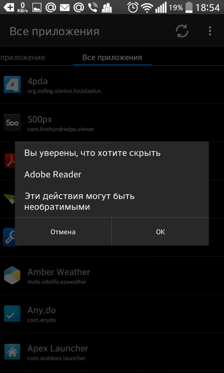 Итак, как скрыть «лишние» приложения в Android (на примере системы, рабочий стол которой управляется приложением Apex Launcher):