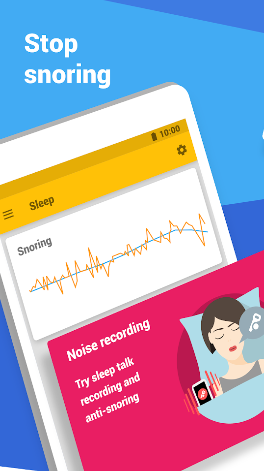• Графики трендов, цели для постепенного улучшения вашего сна и подробные рекомендации по вашим привычкам сна