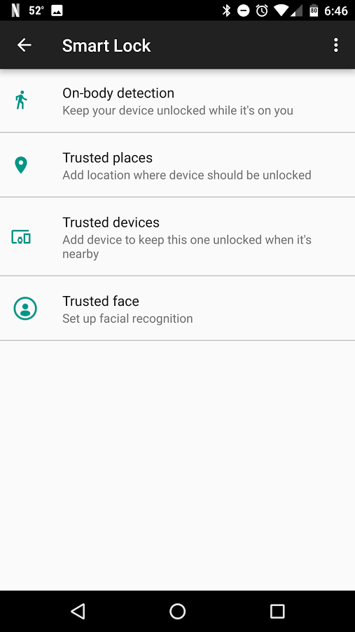 Здесь все очень просто – как только андроид устройство окажется в «безопасном месте», или же если рядом находится доверенное устройство, или если система увидела лицо пользователя, смартфон автоматически будет разблокирован, словно в нем не было блокировки. В общем, если выполнится одно из трех действий, гаджет даст полный контроль без всяких ключей или паролей.