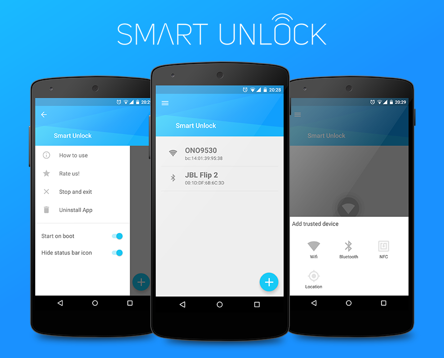 Принцип работы Smart lock заключается в том, что смартфон автоматически блокируется, если оно отдалилось от вас или находится вне зоны безопасности. В настройках можно установить следующие способы разблокировки: