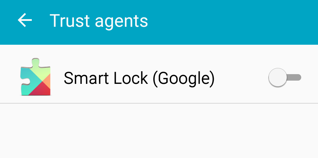 - Откройте «Настройки» > «Безопасность» > «Дополнительно» > «Агенты доверия» и убедитесь, что Smart Lock включен. .