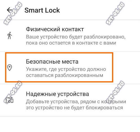Удобно при использовании фитнес-трекера, умных часов и т.д.). - Безопасное место (устройство не будет блокироваться, например, находясь дома, на работе и т.д.)