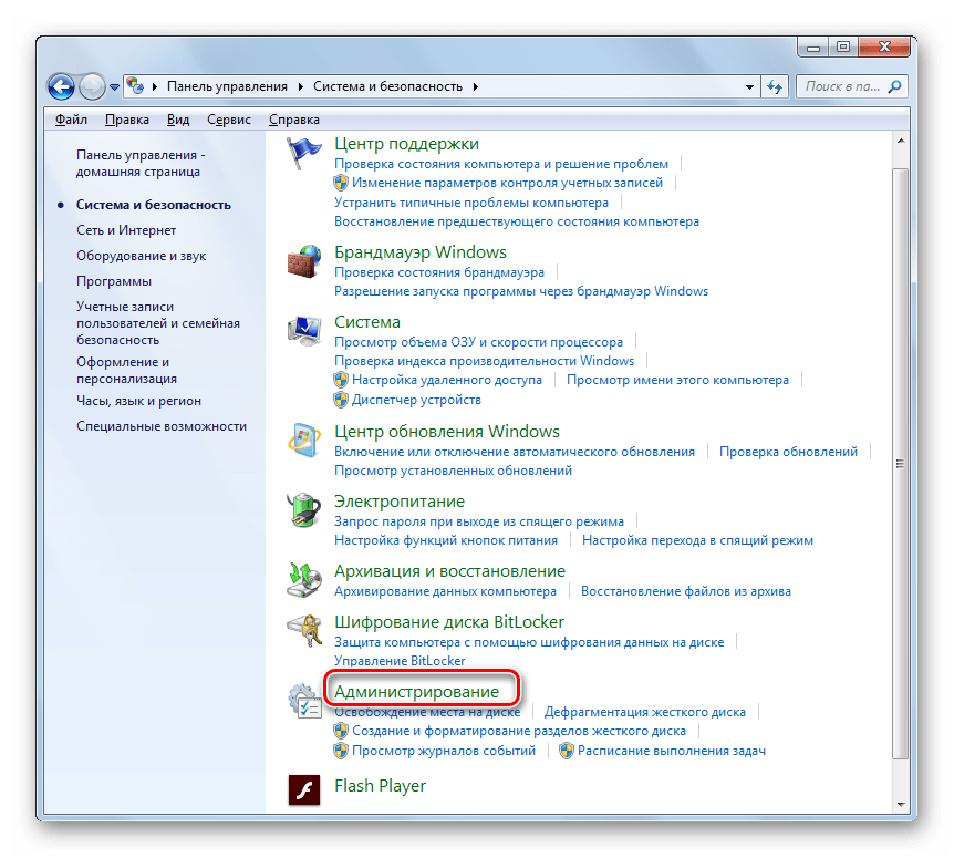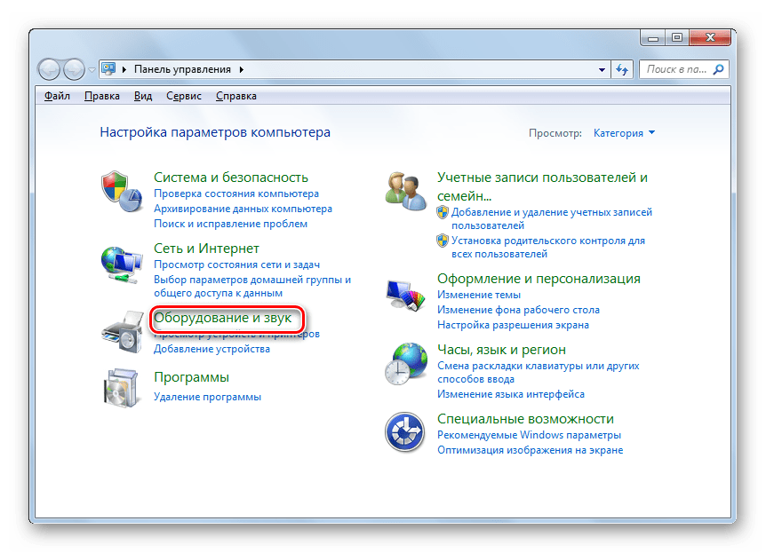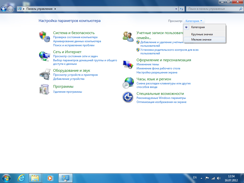 Открытие системных настроек Windows в Windows 7