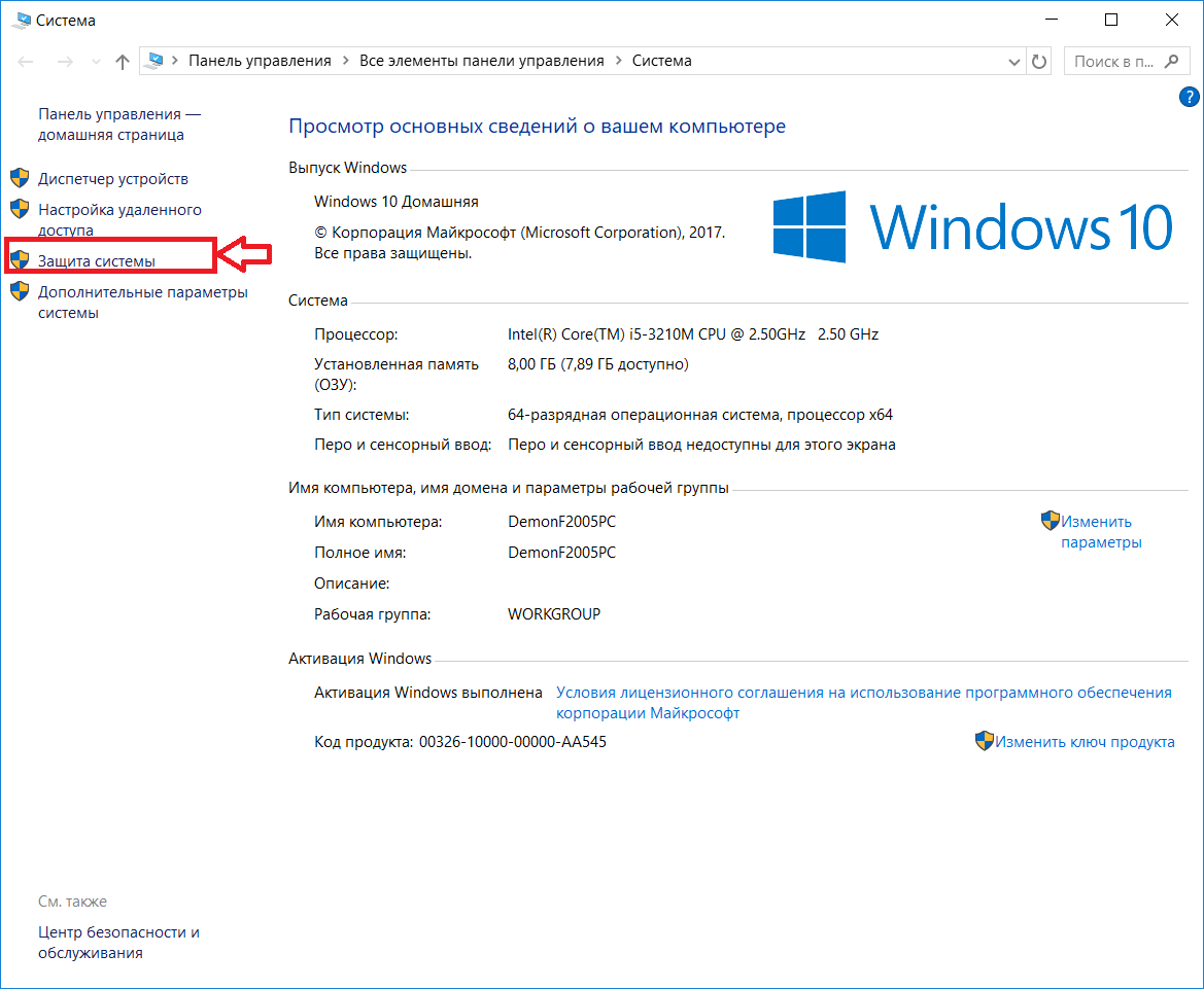 Здесь показаны основные характеристики вашего ПК и установленная вами версия Windows.