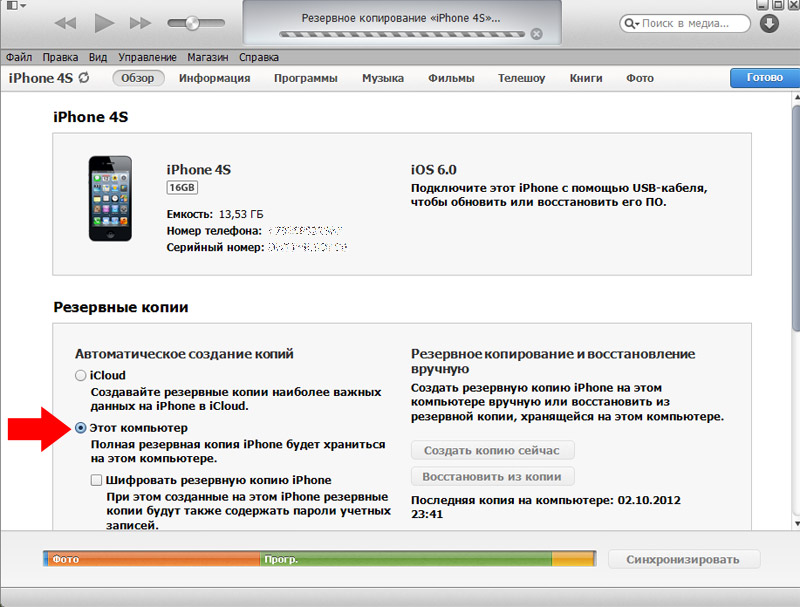 Создание резервной копии