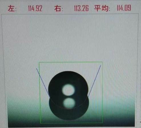 С помощью специального оборудования капля воды наносится на защитное стекло. Чем меньше площадь соприкосновения капли воды с поверхность стекла, тем больше угол и качественнее олеофобное покрытие.