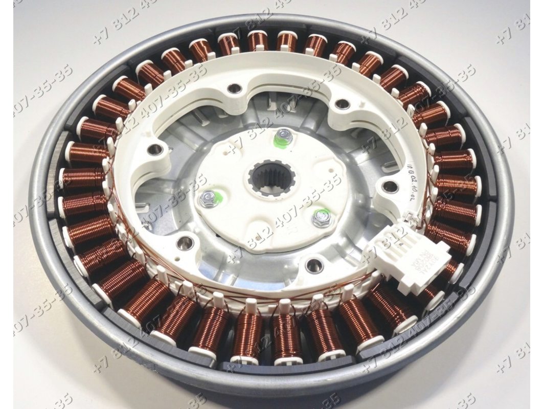 Вал ротора одновременно является валом барабана стиральной машины. Регулировка скорости вращения барабана стиральной машины происходит за счет частотного преобразователя, который изменяет напряжение, и только потом передает его на статор. Электрические сигналы на двигатель поступают с электронного модуля. Это позволяет отладить все режимы стирки с максимальной точностью.
