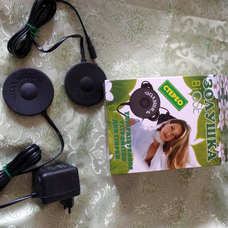 Устройство для стирки «Золушка-стерео» имеет два излучателя и может стирать очень объемные вещи, одновременно стирать цветное бельё в 2-х емкостях или для более качественной стирки вещей в обычном объеме. Второй излучатель подключается в гнездо на блоке питания «Золушки». Допускается работа «Золушки» без подключения 2-го излучателя.
