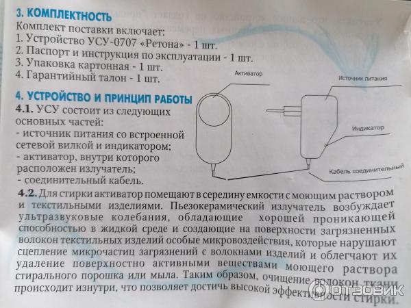 В других положительных отзывах отмечается, что при ручной стирке белого белья Ретона показывает себя с лучшей стороны. Отлично справляется с общими загрязнениями за один час. , осталось только слегка потереть вещь руками. При отсутствии стандартной стиральной машины ультразвуковая Ретона – отличное решение.