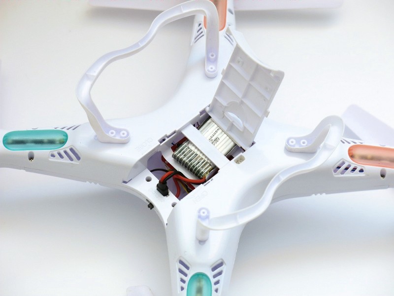 Внутри квадрокоптера имеется небольшая по размеру плата управления и много свободного места, которое можно использовать для установки более ёмкой батареи или дополнительного оборудования.