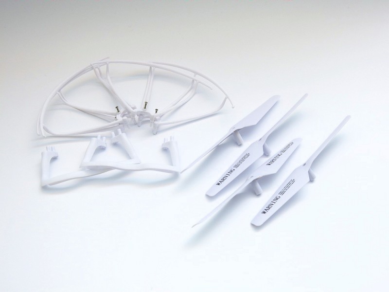 Комплект запасных винтов (4 шт.) + защита винтов (4 шт.). Пластик защиты довольно прочный, думаю отлично справится со своей задачей.