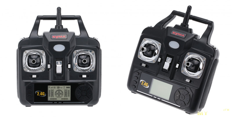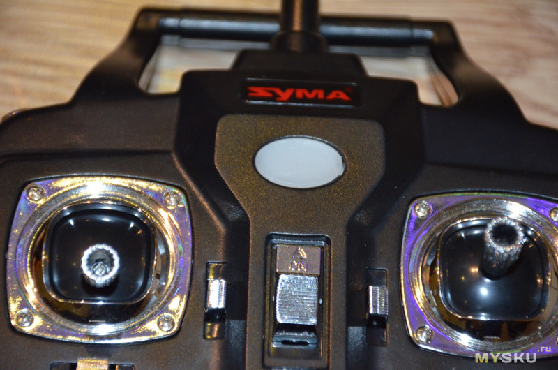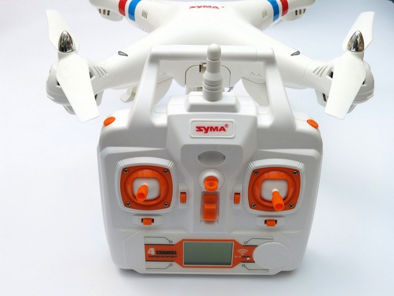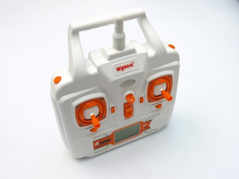 Дизайн пульта претерпел более серьезные изменения. Он стал меньше, обзавелся более мощным передатчиком. Правда, при включенном FPV режиме дальность связи сокращается до 70 метров против 250 метров без FPV. Syma по-прежнему использует устаревшую технологию передачи видео сигнала и сигналов управления на общей частоте 2.4 ГГц. На пульт может быть установлен смартфон.