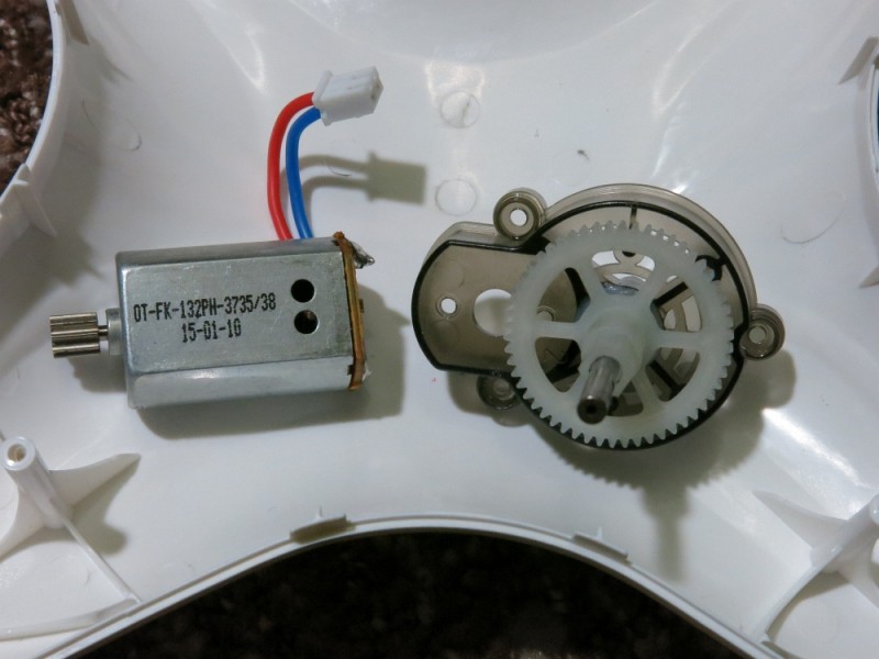 Винты приводятся в движение через пластиковую шестерню, при том на оси нет привычного подшипника.