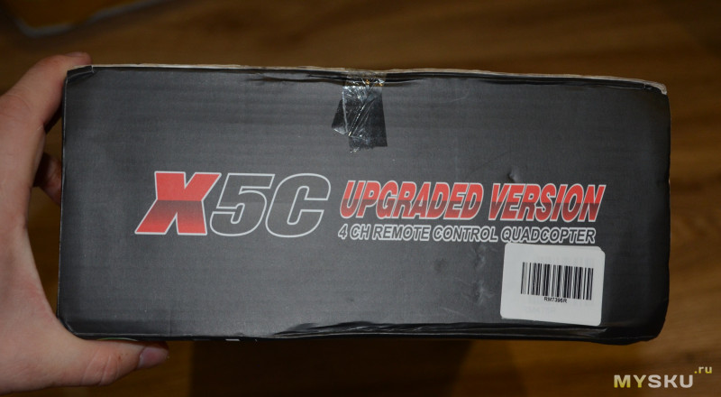 Упаковка абсолютно стандартная для данного магазина. Коробка с квадрокоптером в желтой ленте. Размеры коробки довольно внушительные.