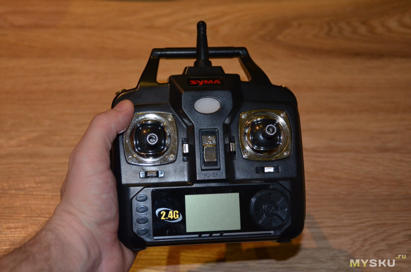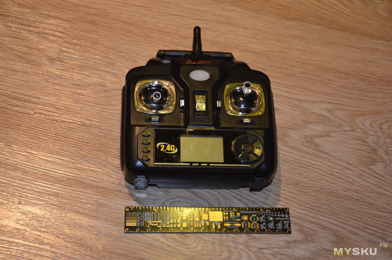 Перейдем к пульту управления. Работает он на частоте 2.4 Ггц, заявленная дальность полета составляет около 100м.