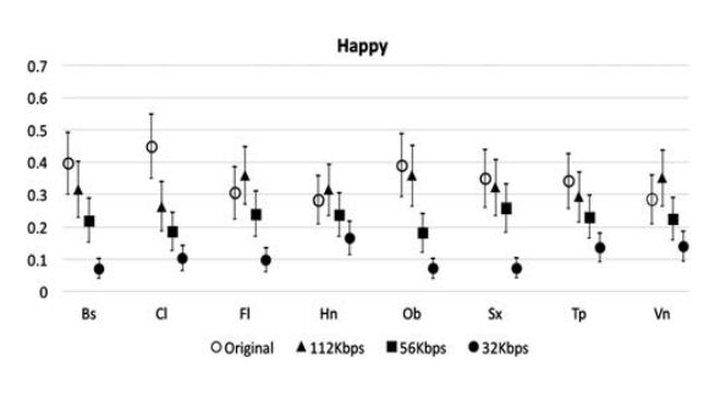 Затем исследователи проанализировали ответы, и в итоге оказалось, что большая часть звуков из положительной категории пропадала, когда файлы сжимались. Кроме того, некоторые инструменты (например, трубы) абсолютно потеряли эмоциональный тембр звучания.