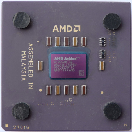 1000 МГц был впечатляющей планкой в 1999 году и перепрыгнуть ее первой старались и Intel и AMD. AMD выпустила новейший процессор Athlon, работающий на частоте 1000 МГц, 6 марта 2000 года и первой покорила рубеж 1000 МГц. Intel не хватило всего 2 дня для победы, она выпустила процессор Pentium III с частотой 1000 МГц 8 марта 2000 года.