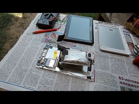 Ну а дальше классика, немного вспомнив незлым тихим словом разработчиков планшетов, разобрал его. Родная батарея приклеена на двухсторонний скотч, а также тряпичным скотчем почти по всему периметру.
