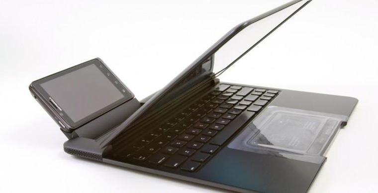 Также компания представила весьма интересную док-станцию, превращающую смартфон в ноутбук. Станция имела собственный 11,6-дюймовый дисплей, аппаратную клавиатуру и аккумулятор. За дисплеем располагалось место для смартфона. Таким образом, все необходимые вычисления выполняет Atrix 4G, но при использовании создалось впечатление, что работаешь за полноценным ноутбуком. Идея была довольно проста – подключив телефон в Lapdock, с помощью Webtop можно было запускать «полноценный» ПК на ноутбуке.