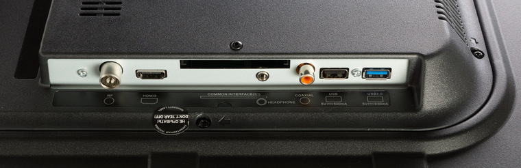 Стремление сделать телевизоры все более тонкими лишает нас некоторых удобств – креплении телевизора на небольшом расстоянии от стены у некоторых может вызвать затруднения с доступом к HDMI и USB-портам, да и разъему для наушников более доступное место не помешало бы. Идеальным вариантом было бы, добавить или перенести пару портов на нижнюю грань, аналогично кнопкам управления.