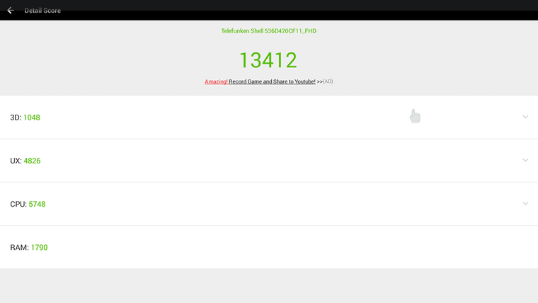 Результат в 13412 говорит, что перед нами совсем не игровой девайс, с другой стороны для работы в интернете и запуска видеоплеера этого более чем достаточно.