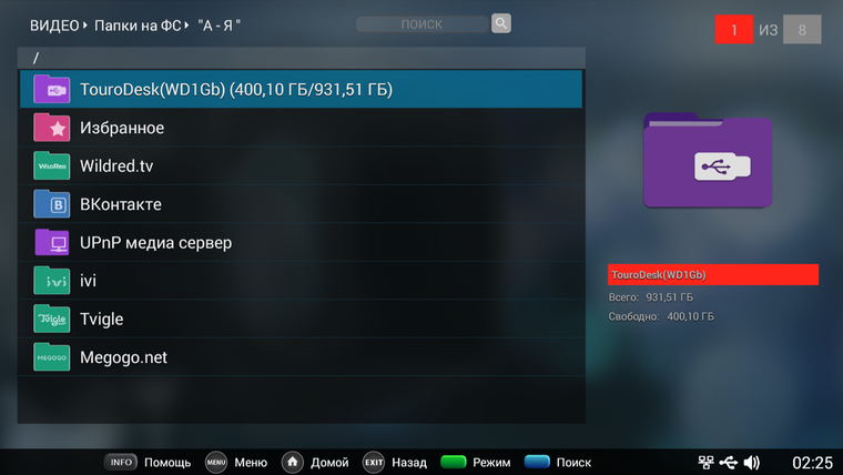 С мобильными дисками и флэшками проблем также не возникло – телевизор проглотил все подключенные устройства, от небольших флэшек до 3Тб внешнего диска, в т.ч. и несколько 2,5” без внешнего питания.