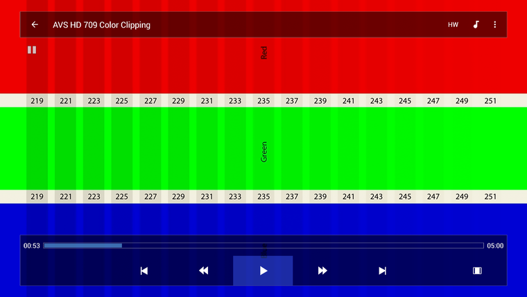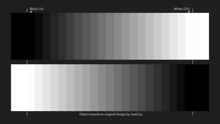 Со статичной картинкой с переходом от белого к черному тоже все в полном порядке – изображения начинают сливаться в отмеченных зонах (16 и 235)