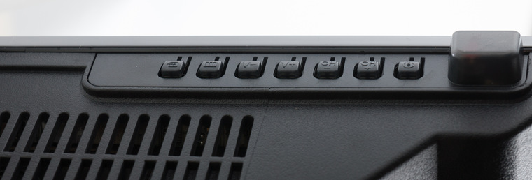 ИК-приемник пульта дистанционного управления вынесен за пределы рамки, рядом расположены кнопки управления, назначение которых придется запомнить – разглядеть подписи к кнопкам на нижней грани непросто.