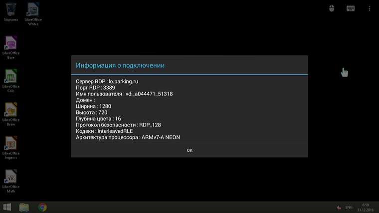 И напоследок, маленькая ложка дегтя для любителей YouTube – максимальное разрешение штатного приложения не может быть выше чем HD (1280х720). Связано это с тем, что разрешение оболочки Android 1280х720p, а это значит, что все приложения использующие свои декодеры не могут превысить это разрешение. С этим же ограничением связано и разрешение RDP-подключений в разделе «Офис»