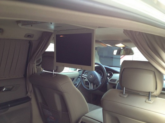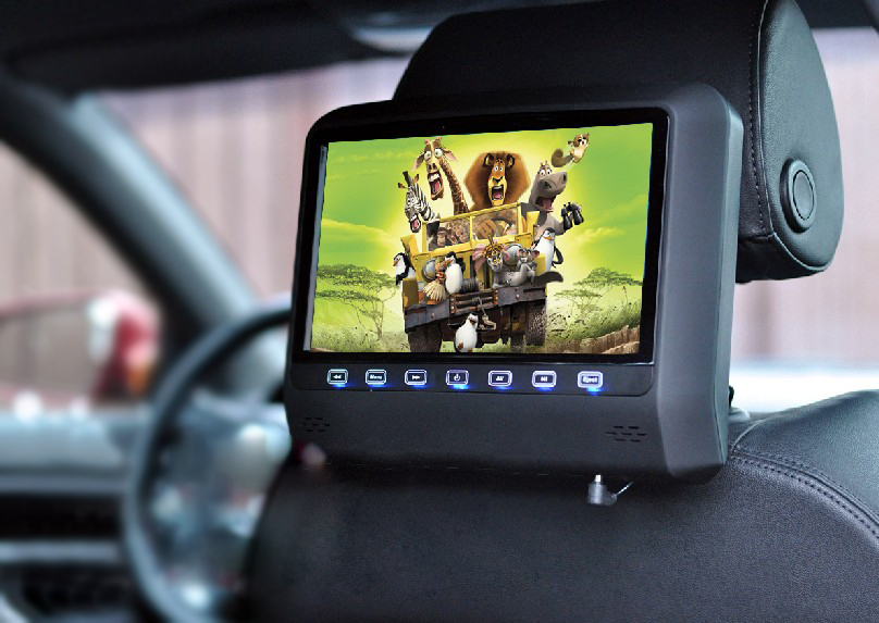 - екрани невеликих розмірів можуть вбудовуватися в підголовники або сонцезахисні козирки. Зручні для перегляду тільки пасажирам, що сидять навпроти. Плюс в тому, що кожен може дивитися відео на свій смак.