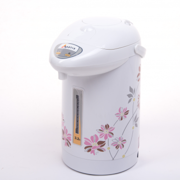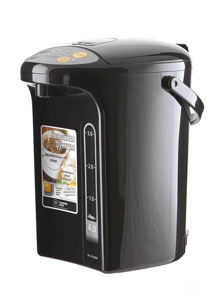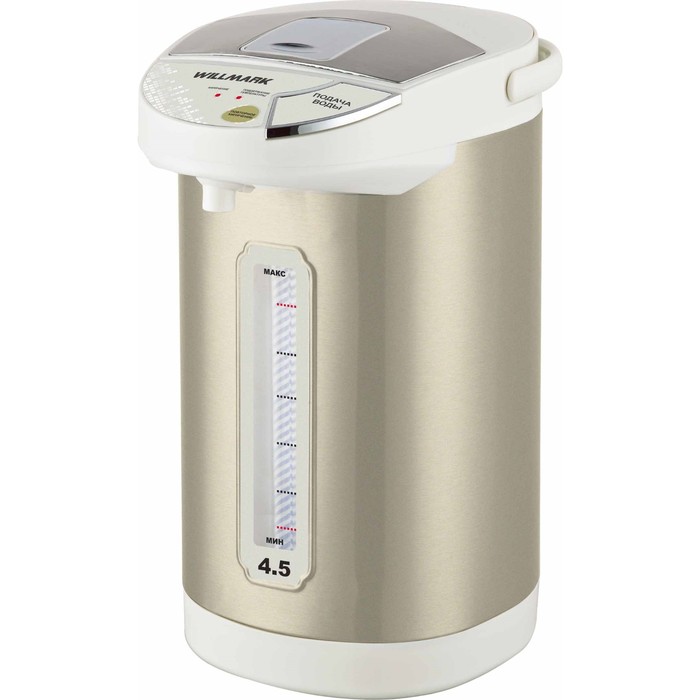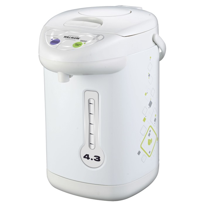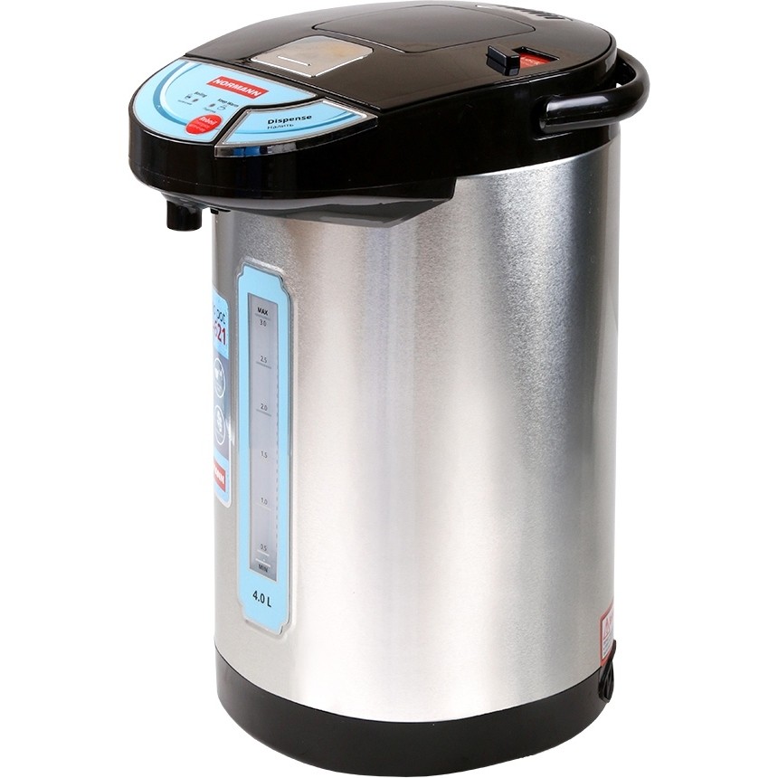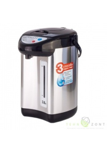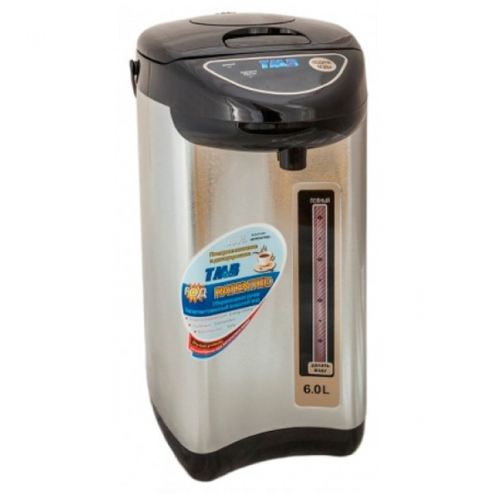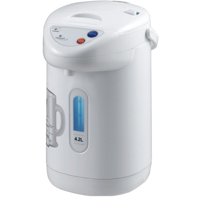 Для такого вместительного агрегата необходима и значительная мощность: максимально, в режиме кипячения она составляет 1,1 кВт. Бренд уже завоевал популярность своими качественными материалами, например, плотным пластиком без посторонних запахов, добротным внешним видом, достаточно надежной электронной начинкой устройств. Термопот кипятит воду, а затем автоматически переходит в режим поддержания t (85…95°C) продолжительностью 24 часа. Налить подогретую воду можно, нажав на кнопку электронасоса или чашкой на рычаг носика. Гарантия – год.