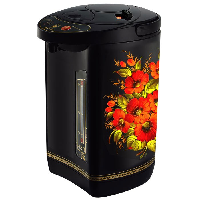 Термопот объемом 4 л выпускают в черном и белом корпусе. Основные плюсы: