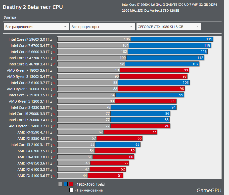 Если бы мы сравнили 8700K и 2600X при 1080p с предустановкой Ultra High на GTX 1070, мы бы обнаружили, что оба процессора способны примерно 70 кадров в секунду, и это, безусловно, очень играбельная производительность для такой игры. Это заставило бы нас поверить, что 8700K всего на 3% быстрее, чем 2600X, что составляет менее половины отставания, которое мы получили при использовании GeForce GTX 1080 Ti в 2017 году.