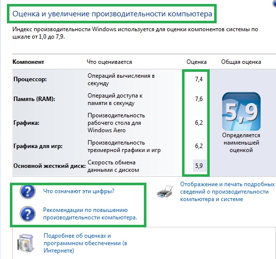 Первым и самым простым инструментом для получения представления о компьютере, является индекс производительности Windows.
